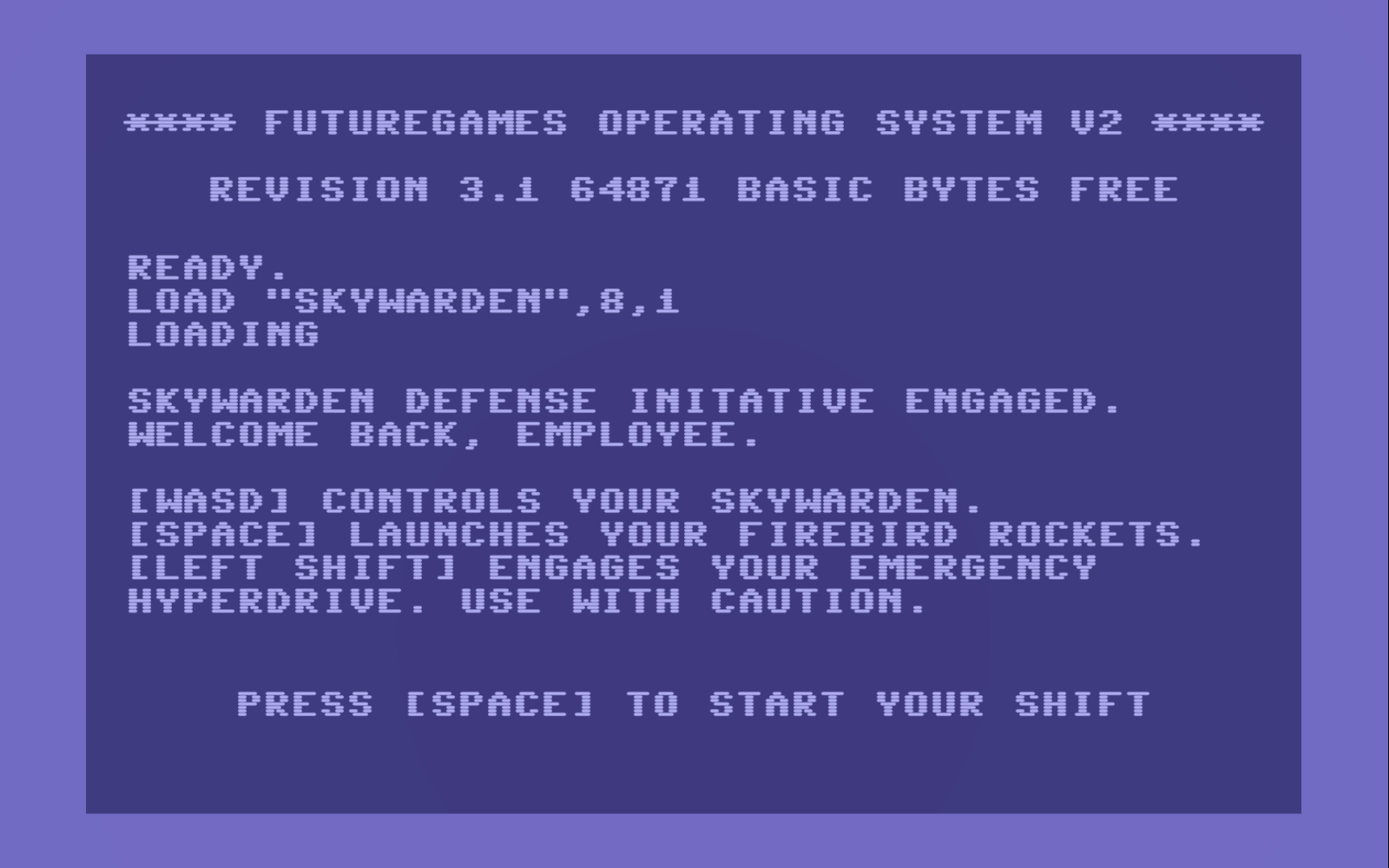 The first Unity game I ever created on my own was called Skywarden, an homage to the arcade games of the 80s. It's honestly just an Asteroids clone, but with satisfying explosions and wrapped in a C64 aesthetic. I also learned a lot of C# when making it!
